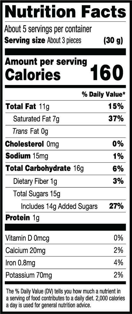 LEMON TRUFFLE FILLING FILLING (White Confectionery Coating [Sugar, Palm Kernel Oil, Nonfat Milk Powder, Whole Milk Powder, Whey Powder, Palm Oil, Soy Lecithin, and Vanilla], Palm Oil, Lemon Compound [Lemon, Cane Sugar, Natural Flavor, Sodium Citrate, Ascorbic Acid], Natural Flavor, Soy Lecithin [an emuslifier]), DARK CHOCOLATE (Sugar, Chocolate Liquor, Cocoa Butter, Butter Oil, Soy Lecithin [an emulsifier], Pure Vanilla) WHITE CONFECTIONERY COATING (Sugar, Palm Kernel Oil, Nonfat Milk Powder, Whole Milk Powder, Whey Powder, Palm Oil, Soy Lecithin, and Vanilla), LEMON FLAVORED SALT (Salt, Natural Flavor).