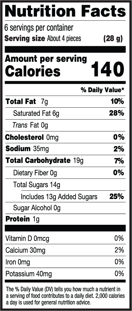 LEMON TRUFFLE FILLING (White Confectionery Coating [Sugar, Palm Kernel Oil, Nonfat Milk Powder, Whole Milk Powder, Whey Powder, Palm Oil, Soy Lecithin, and Vanilla], Palm Oil, Turmeric [color] Natural Flavor, Malic Acid [for flavor], Salt, Lemon Compound [Lemon, Cane Sugar, Natural Flavor, Sodium Citrate, Ascorbic Acid]), SHORTBREAD COOKIE BITS (Wheat Flour, Sugar, Palm Oil, Soy Lecithin, Natural Flavor (contains milk), Baking Soda, Salt, Soy Lecithin), WHITE CONFECTIONERY COATING (Sugar, Palm Kernel Oil, Nonfat Milk Powder, Whole Milk Powder, Whey Powder, Palm Oil, Soy Lecithin, and Vanilla), LEMON SALT (Sea Salt and Lemon Powder).